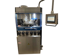 En respuesta a los requerimientos del estándar GMP, adoptamos acero inoxidable como el material usado en las partes que están en contacto con los productos producidos, además de una superficie pulida del plato giratorio y vidrio orgánico en la ventana de observación y mantenimiento. Adicionalmente, este dispositivo viene con protección contra sobrecargas, sistema de accionamiento y sistema hidráulico para la medición de la frecuencia. Su punzón es del tipo ZP19 ZP33B.