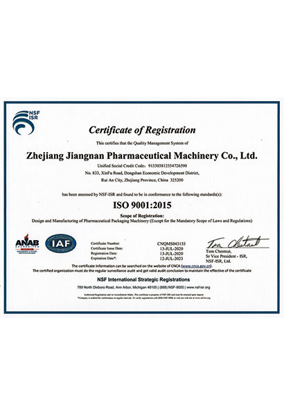 Con más de 20 años de experiencia en investigación y desarrollo de maquinaria para empacado farmacéutico, promovemos la orientación hacia las personas, innovación, racionalidad, utilidad y durabilidad entre nuestro personal y nuestros productos. Hoy en día contamos con un taller de fabricación con un área de 10,000 metros cuadrados, oficinas con un área de 3,000 metros cuadrados, mas de 225 empleados y un excelente equipo de I+D. Jiangnan ha obtenido la certificación del sistema de gestión de la calidad ISO9001:2000 y la mayoría de nuestros productos tienen certificado CE.